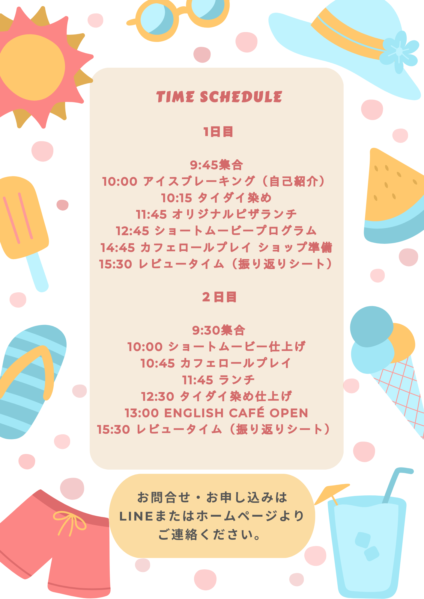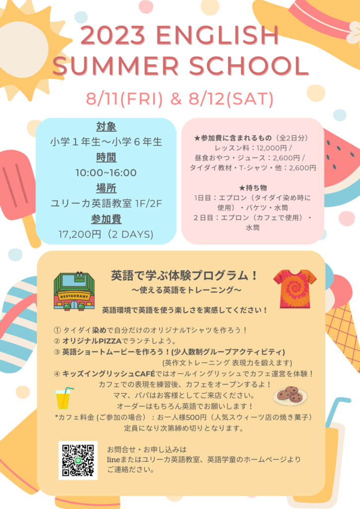 8月中旬、去年英語教室でも開催しました ENGLISH SUMMER SCHOOLを行います!