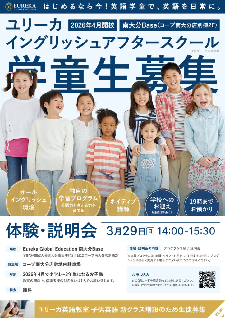 【2026年3月29日】ユリーカイングリッシュアフタースクール無料体験会開催(小1〜3)
